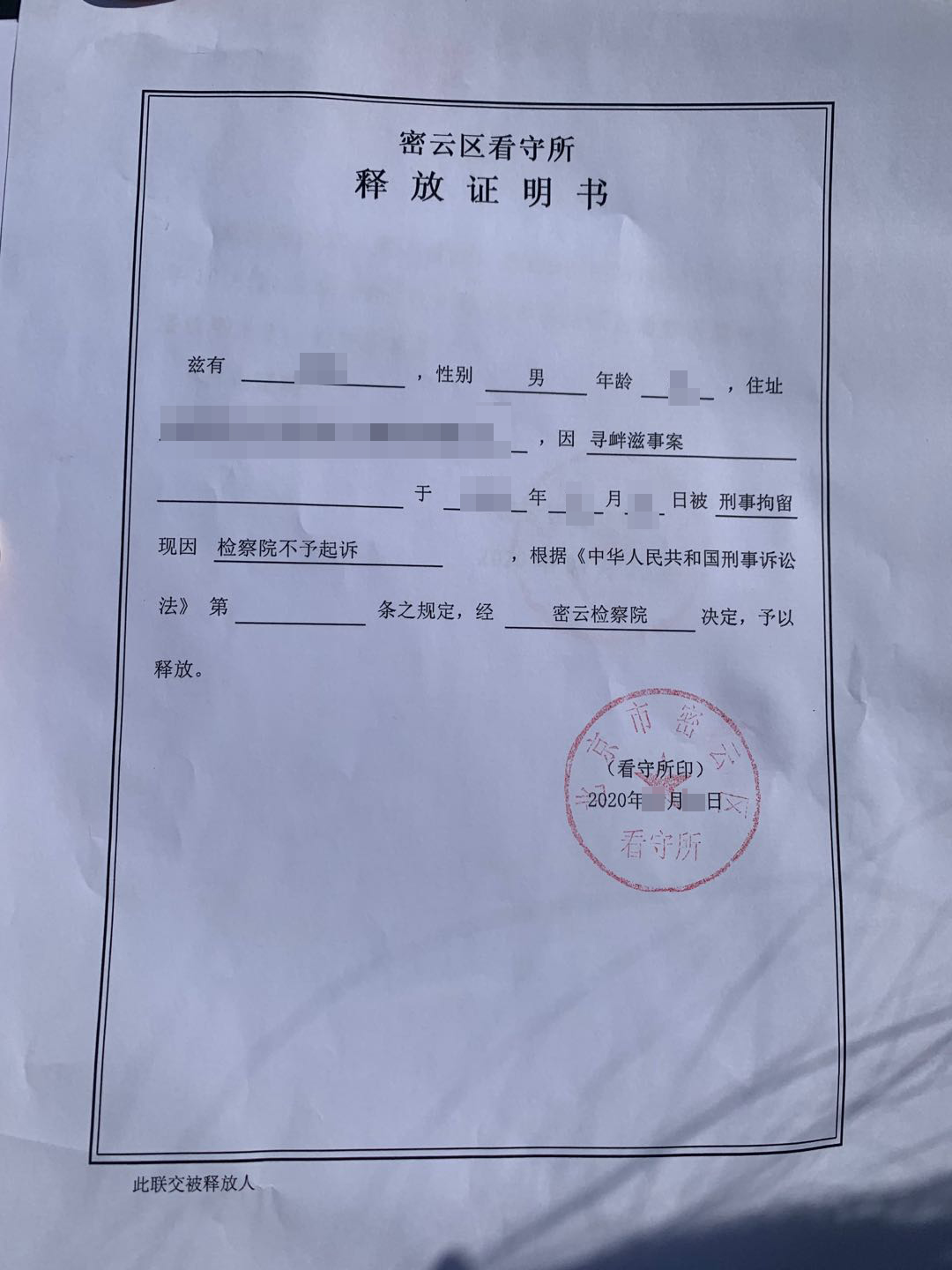 刘某因在QQ群辱骂他人,涉嫌寻衅滋事罪被北京市公安局密云分局刑事拘留,并被密云检察院批准逮捕。经北京市国韬律师事务所李在珂律师团队宣玥律师提供法律帮助,密云检察院采纳了律师提交的不予起诉的法律意见,密云区人民检察院决定不起诉处理。注:为保护案件当事人的个人隐私及涉及国家机密案件、有伤社会风化及其它不宜公开的案件,我们特对案件当事人的姓名、籍贯、住址、单位名称等做了隐藏技术处理,并只公布了判决文书的首页(显示李在珂律师团队律师是本案辩护律师)、尾页(显示判决结果),以证明李在珂律师团队律师律师所辩护的成功案例的真实性!特此说明!