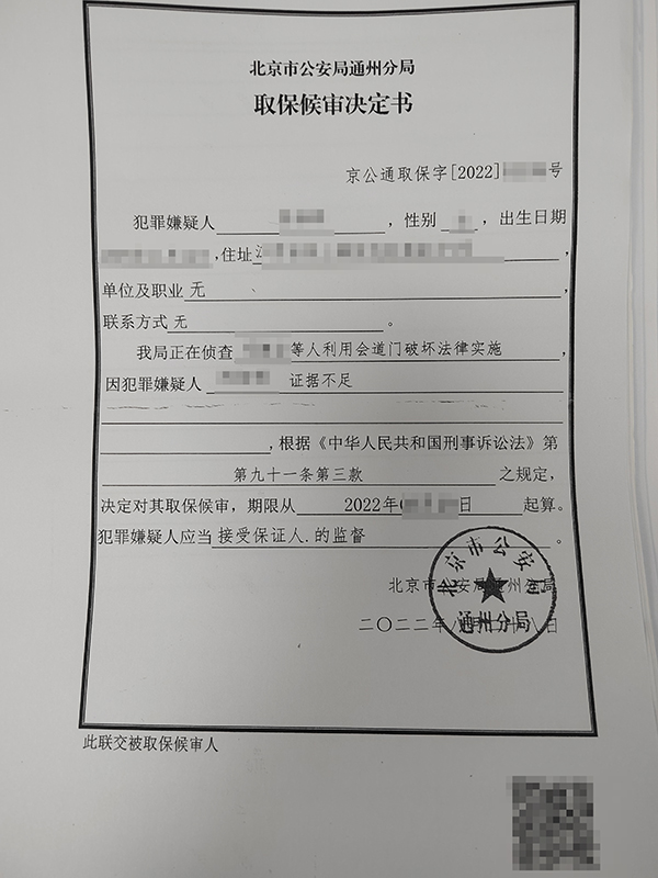 涉及会道门案件被取保候审
