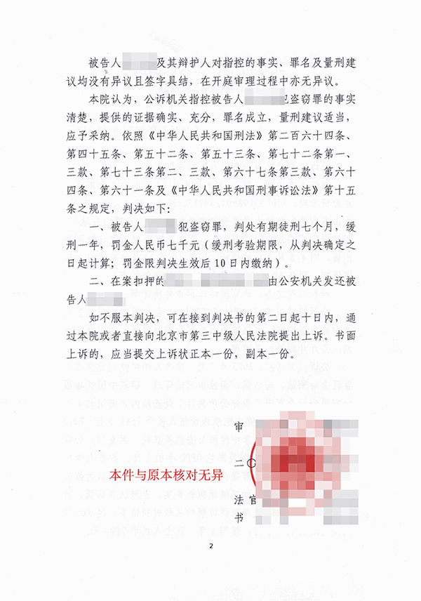 王某因为涉嫌盗窃被北京市公安局平谷分局刑事拘留,后又被平谷检察院批准逮捕。刑家属委托北京市国韬律师事务所介入,经李在珂律师团队提供法律帮助,在检察院阶段成功取保候审,并且后续平谷法院觉得判处缓刑。注:为保护案件当事人的个人隐私及涉及国家机密案件、有伤社会风化及其它不宜公开的案件,我们特对案件当事人的姓名、籍贯、住址、单位名称等做了隐藏技术处理,并只公布了判决文书的首页(显示李在珂律师团队律师是本案辩护律师)、尾页(显示判决结果),以证明李在珂律师团队律师律师所辩护的成功案例的真实性!特此说明!